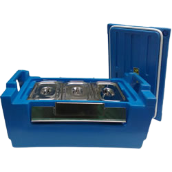 Caixa térmica para transporte de alimentos quentes ou frios. Capacidade 30 litros. Utiliza cubas GN 1/1 - 1/2 - 1/3